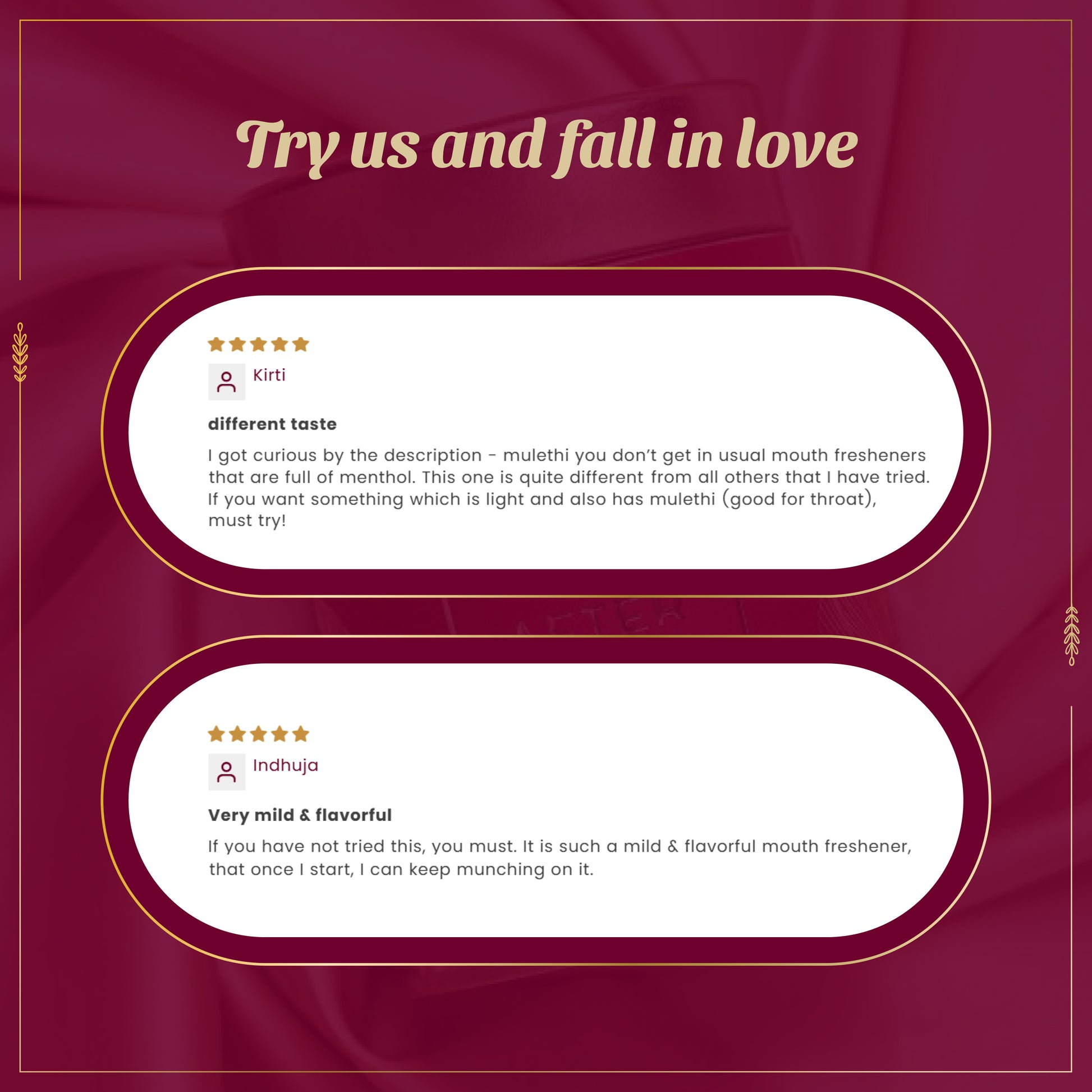 Kirti I got curious by the description - mulethi you don’t get in usual mouth fresheners that are full of menthol. This one is quite different from all others that I have tried. If you want something which is light and also has mulethi (good for throat), must try!