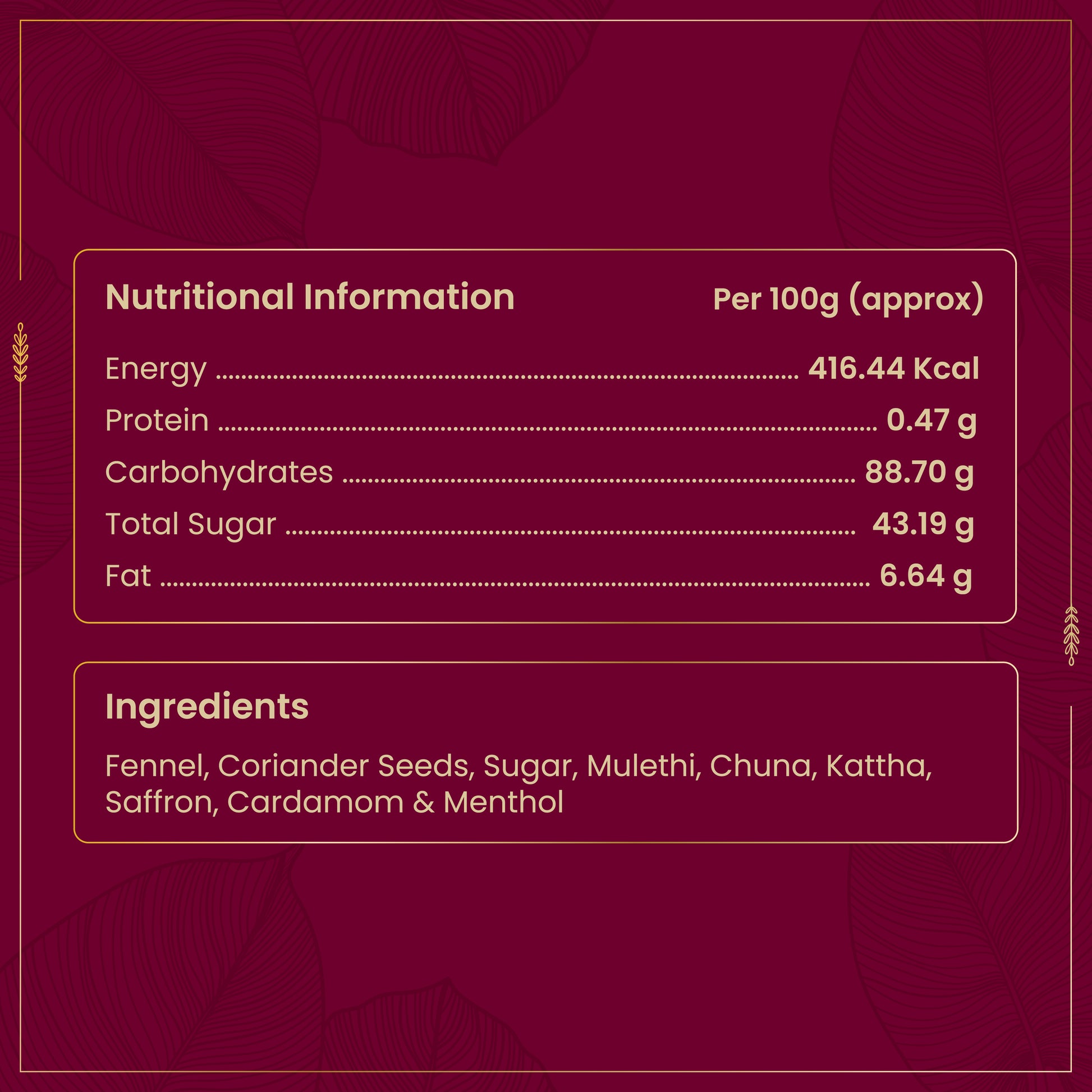Discover Rajasthan’s best-kept traditional recipe, featuring the goodness of Mulethi (Licorice), Cardamom, and Saffron, blended into a lightly sugared, mentholated base of Saunf (fennel). This authentic mouth freshener offers a refreshing, flavorful experience with the perfect balance of taste and health!